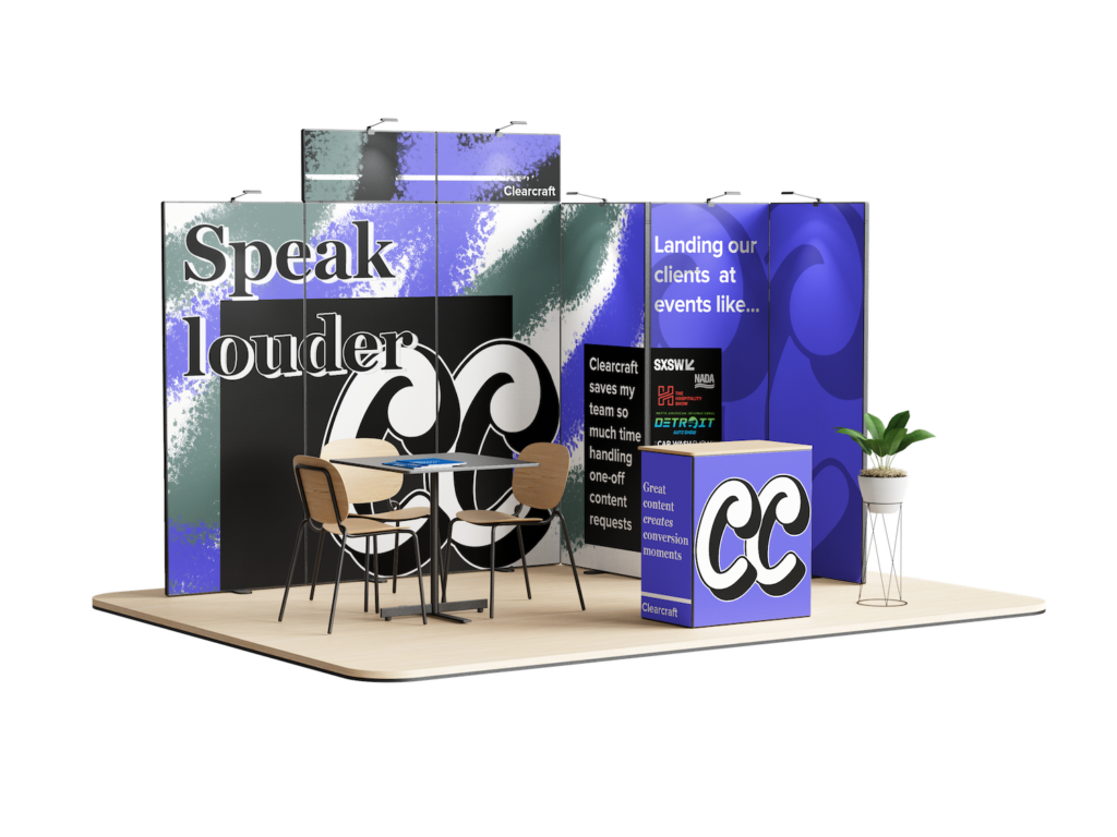 We design the environmental details that set the tone for an event, from booth lighting to video walls and more.